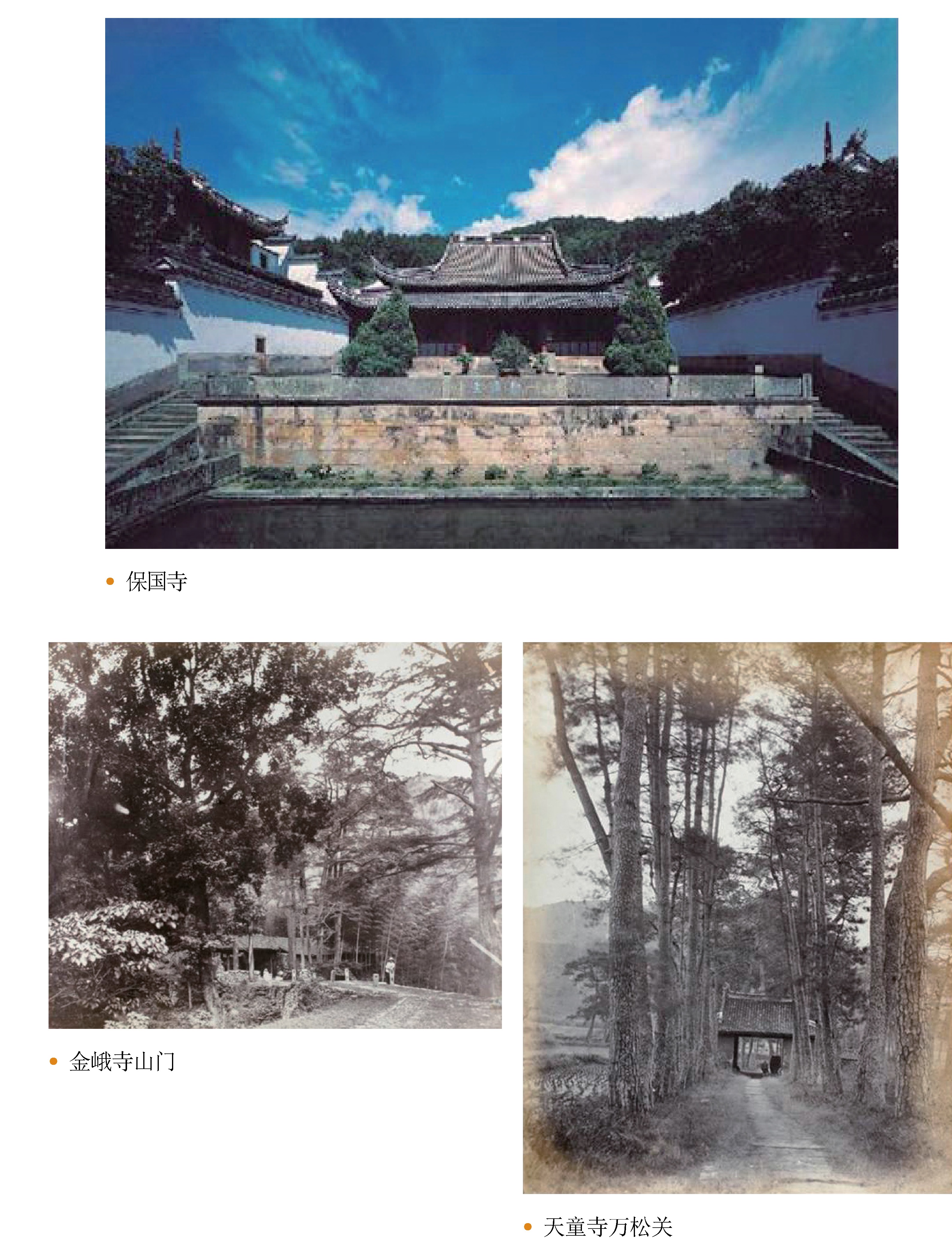 东以太白山为护山,有天童寺。西晋永康元年(300),僧人义兴云游至此,因爱其山水,遂在此结茅修持。相传当时东谷附近并无人烟,却有一位童子每天前来送给薪水。不久精舍建成,童子对义兴大师说:吾乃太白一辰,玉帝遣侍左右。言讫不见。由此山名太白,寺名天童。天童寺距今已有1700多年历史,是我国佛教五大丛林之一。